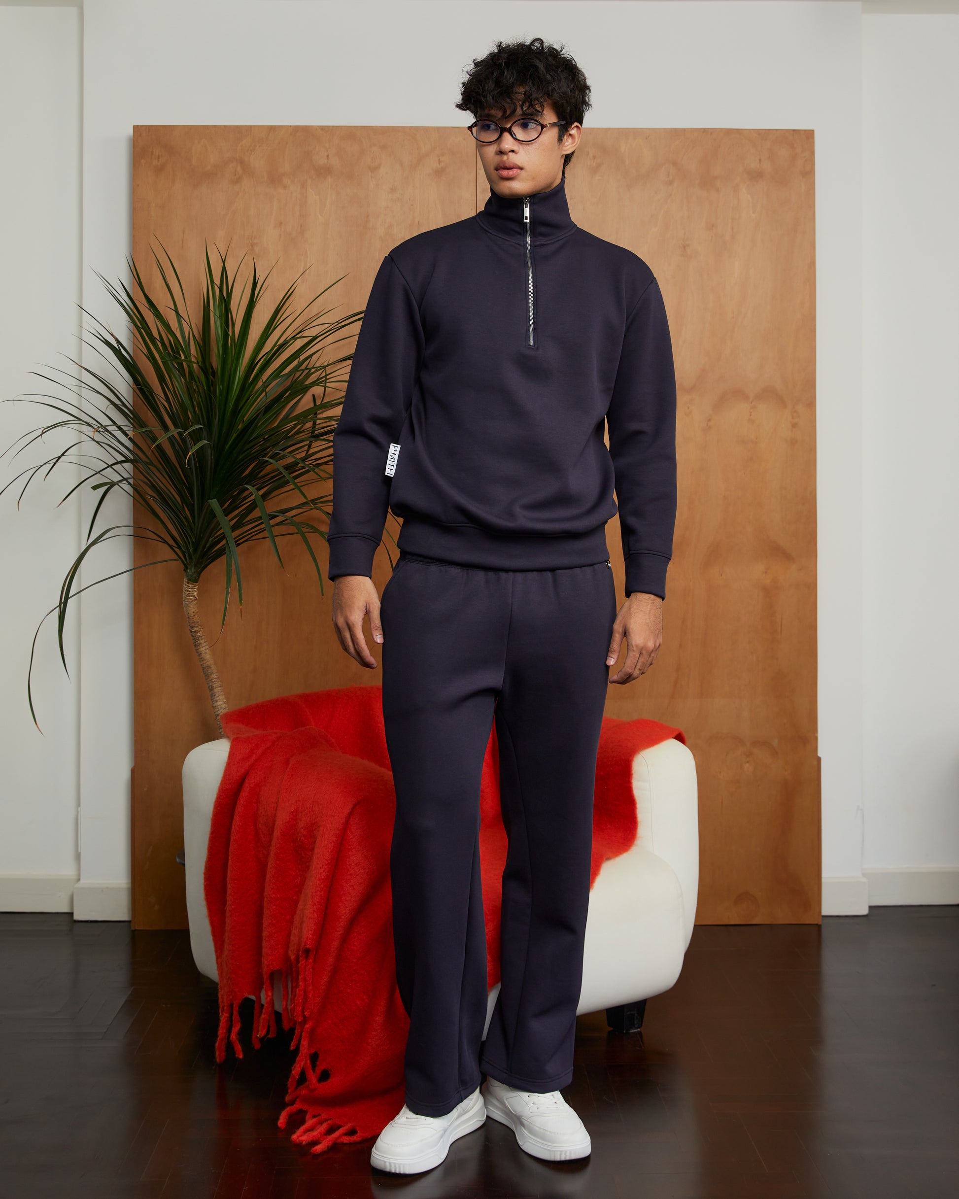 Navy Blue Cotton Wide-Leg Sweatpants